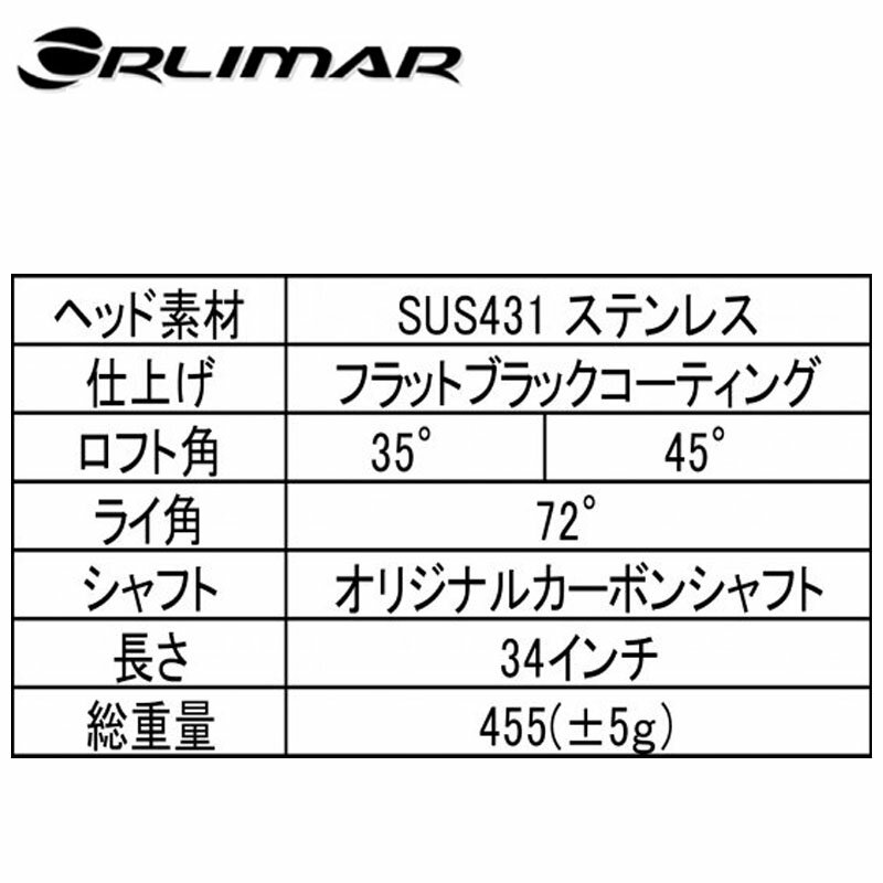オリマー チッパー ORLIMAR Chipper ■商品詳細■ ●ヘッド:SS431ステンレス ●仕上げ:フラットブラックコーティング ●ロフト:35°/45° ●ライ角:72° ●シャフト:オリジナルカーボン ●長さ:34インチ ●総重量:459g グリーン周りで威力を発揮!! アプローチでスコアを崩してしまうかた。
