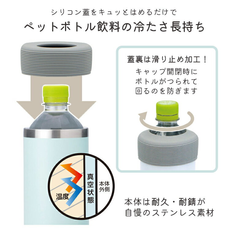 ・シリコーン製フタで着け外しが簡単 ・ペットボトルのキャップの開閉がしやすい 水回りに多く使用されている、耐久性・耐錆性に優れた18-8ステンレス素材を使用。