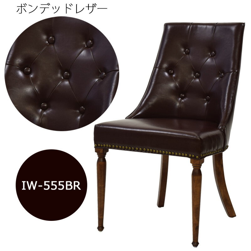 商品名:チェア サイズ:W51 × D57 × H90 × SH47 cm 商品重量:約 14.0 kg 材 質:天然木(ラバーウッド) ラッカー塗装 ボンデッドレザー(IW-555BR) コットン・ポリエステル(IW-555DEA) 静的耐荷重:約 80 kg 原産地:中国