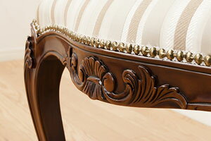 サイズ W59×D64×H91(SH44.5)cm重量 約7.5kg梱包サイズ 約62.5×66×96.5cm梱包重量 約12.5kg材質 構造部材:天然木、 表面加工:ラッカー塗装、 張り材:ポリエステル70%・コットン30%、 クッション材:ウレタンフォーム生産国 インドネシア仕様 完成品天然木を使用した、高級感あふれる手彫り仕上げのチェアーです。