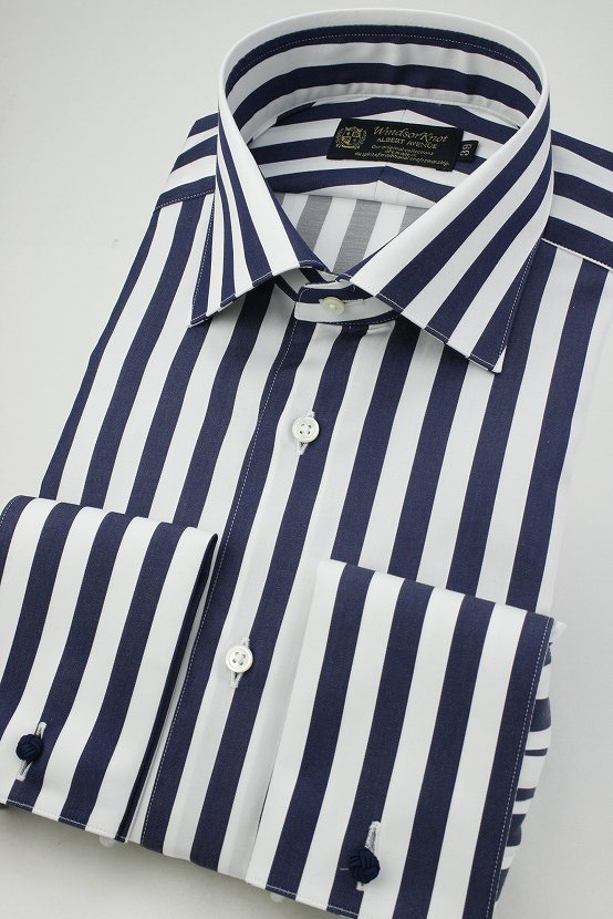 生産国日本 MADE IN JAPAN発売元ウィンザーノット関連ワードblue_navy stripe double_cuffs blue_navy wide_collar ドレスシャツ ワイシャツ 日本製 カッターシャツ メンズシャツ Yシャツ イージーケア easyiron ビジネス MADE IN JAPAN ロンドンストライプ コットン 綿 わいど ワイドカラー ★