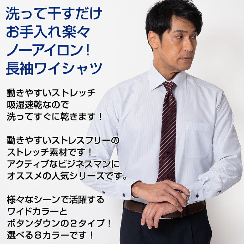 UNITED GOLD ユナイテッドゴールド UNITEDGOLD 2022年4月より、当シリーズ新作モデルとなって再販開始 『ノーアイロン』『ストレッチ』『速乾』長袖ドレスシャツ ワイドカラーとボタンダウンの2タイプ 洗って干すだけ、お手入れ簡単な「ノーアイロン」長袖ドレスシャツ。