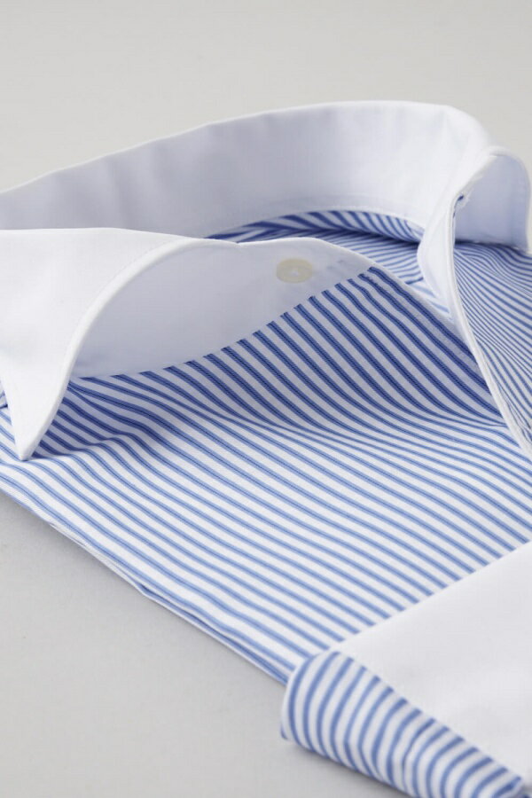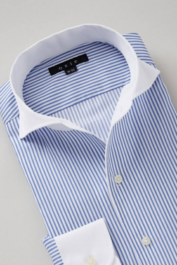 ※弊社「あす楽」詳細を必ずご確認ください⇒ワイシャツ専門店ozie メンズ:ドレスシャツ/ワイシャツ/Yシャツ/カジュアルシャツ/クールビズ/cool biz/通販 おすすめ用途: 誕生日 お祝い 贈物 贈り物 ギフト バレンタインデー 卒業祝い 入社祝い 母の日 父の日 敬老の日 クリスマス プレゼント 就活用 就職活動 利用時期: 春物 夏物 秋物 冬物 2022 サイズ展開:| Sサイズ-37-80 | Sサイズ-38-81 | Mサイズ-39-82 | Mサイズ-40-83 | Lサイズ-41-84 | Lサイズ-42-85 | LLサイズ-43-86 | 3Lサイズ-45-86 | 4Lサイズ-47-86 | トールサイズ-Mサイズ-39-88 | トールサイズ-Lサイズ-41-90 | トールサイズ-LLサイズ-43-90 |タイト スリム 細身Powered by EC-UPプレミアムコットンのストライプ生地使用ノーネクタイの上品シャツスタイルに最適!エレガントなノーネクタイ専用シャツブルー 青 【】【 プレミアムコットン 】 【 綿100%・70番手単糸 】【 クレリック 】 【 イタリアンカラー/第一ボタンあり 】 【 ワイドカラー 】【 長袖 】 ●プレミアムコットン=超長綿とは? 綿は一般的に繊維が長いほうが上質となります。