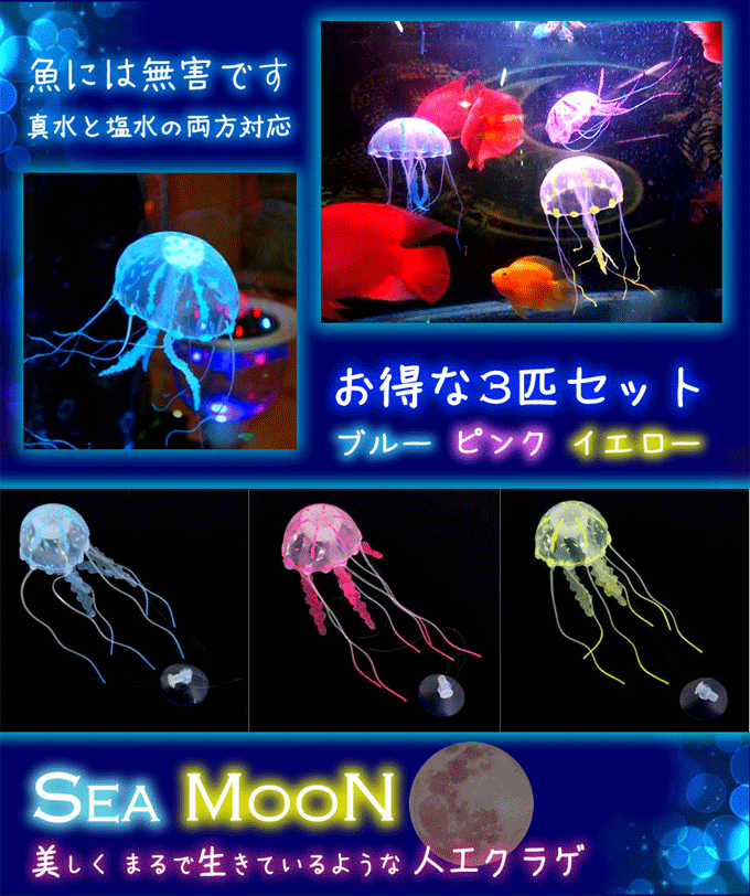 【メール便発送・代引不可】海月 究極の 癒しを あなたへ 吸盤でくっつく かわいい くらげ アクアリウム クラゲ シリコン 人工 水槽 金魚 熱帯魚 シームーン 3匹セット TEC-SMND